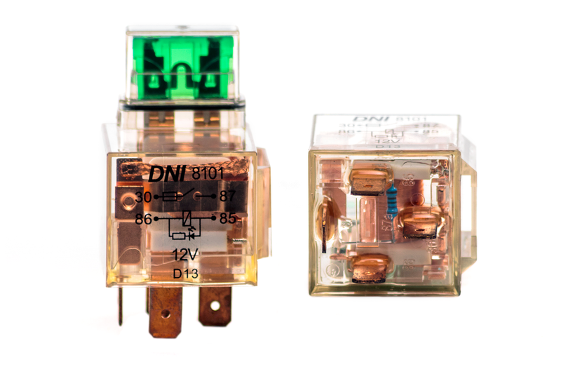 RELE TRANSPARENTE CON FUSIBLE LED 12V 5P 50/40A