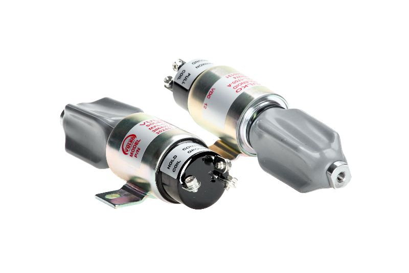 SOLENOIDE APAGADO DE BOMBA INYECCION CUMMINS 6BT 6CT HYUNDAI CATERPILLAR E70B KOMATSU BASE A AMBOS LADOS 2H EN CADA LADO 3T 12V