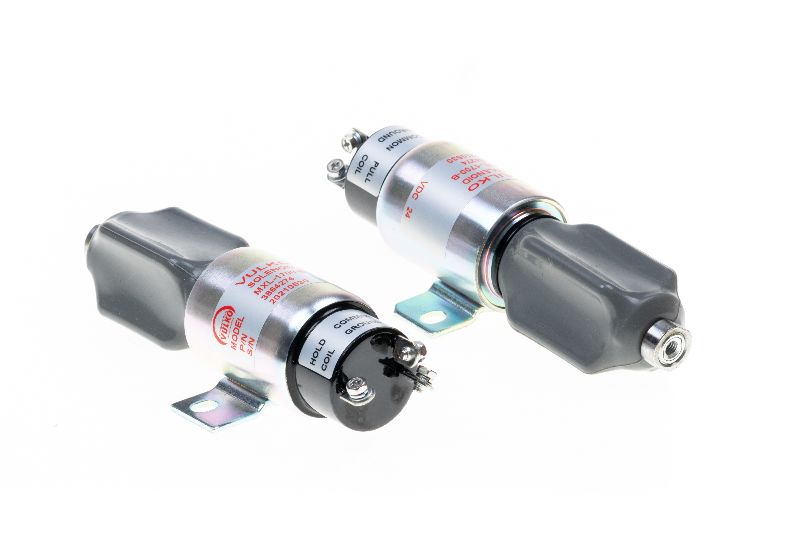 SOLENOIDE APAGADO DE BOMBA INYECCION CUMMINS 6BT 6CT HYUNDAI CATERPILLAR E70B KOMATSU BASE A AMBOS LADOS 2H EN CADA LADO 3T 24V